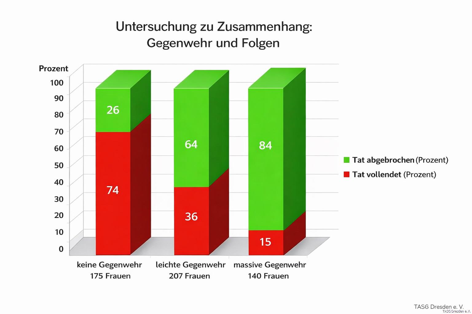 - Bei deutlicher, entschlossener Gegenwehr lag die Abbruchquote deutlich höher als bei fehlender Reaktion.