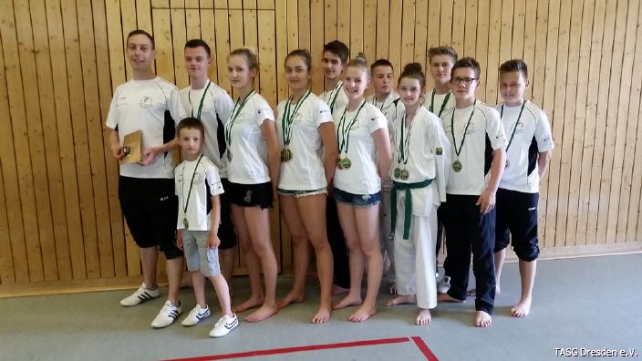 Bei der mit 142 Teilnehmern besuchten Landesmeisterschaft Technik konnte unser Verein wieder einen großartigen Erfolg erringen - den 1. Platz in der Vereinswertung. Bei sommerlichen Temperaturen sorgten unsere Bautzener Freunde für eine gute Organisation des Turniers - vielen Dank dafür. Mit der Unterstützung von Felix, Paul, Claudi, Jens und Lisa als Kampfrichter und der Anfeuerung der mitgereisten Eltern konnten ausnahmslos alle Sportler wieder eine tolle Leistung abrufen - wir sind richtig stolz auf euch!!!