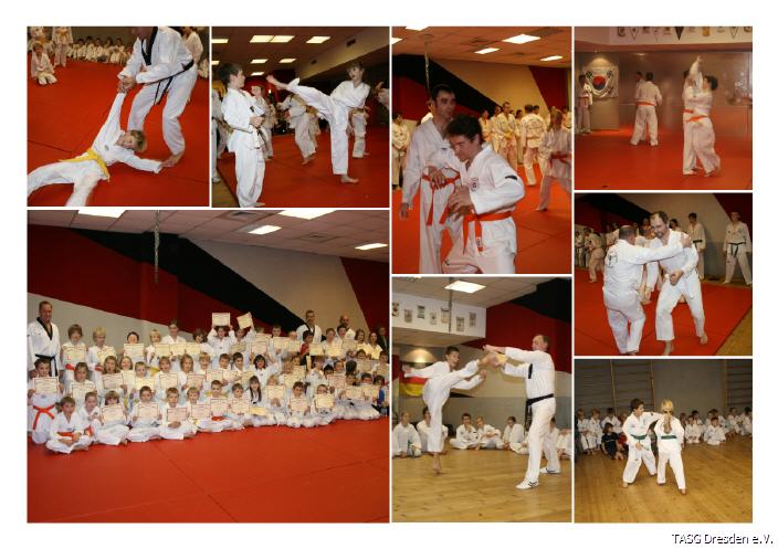 Auch in diesem Jahr war kurz vor Weihnachten Prüfungszeit. Sowohl im Allkampf als auch im Taekwondo standen die Prüfungen für Kinder und Erwachsene an. Für uns waren diese Prüfungen sehr erfolgreich. Insgesamt über 180 Prüflinge aus 5 Schulen traten zur Prüfung an. Leider konnten nicht alle Sportler das gesteckte Ziel erreichen. Dies betrifft aber keinen Sportler aus unserem Verein. Alle Sportler unseres Vereins haben ihr Ziel, die neue Graduierung zu erreichen, auch geschafft und konnten sich so selber ein vorzeitiges Weihnachtsgeschenk machen. Besondere Leistungen zeigten dabei Felix Dartsch und Lucas Hübner. Beide stammen aus unserem Verein und schlossen die Prüfung als Prüfungsbeste ab, Lucas bei den unteren und Felix beii den oberen Graduierugen.